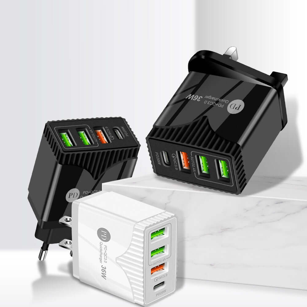 PD36W Fast Charge Charger 5V62A European And American British Standard Charging Plug QC30 Fast Charge Adapter Cross-border Products