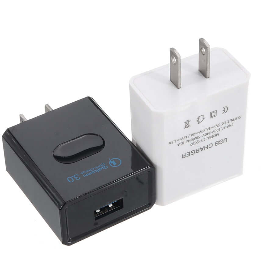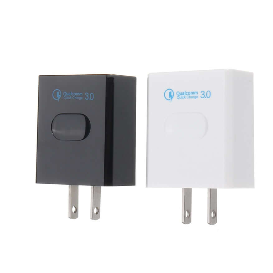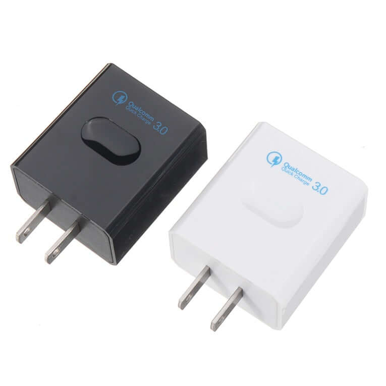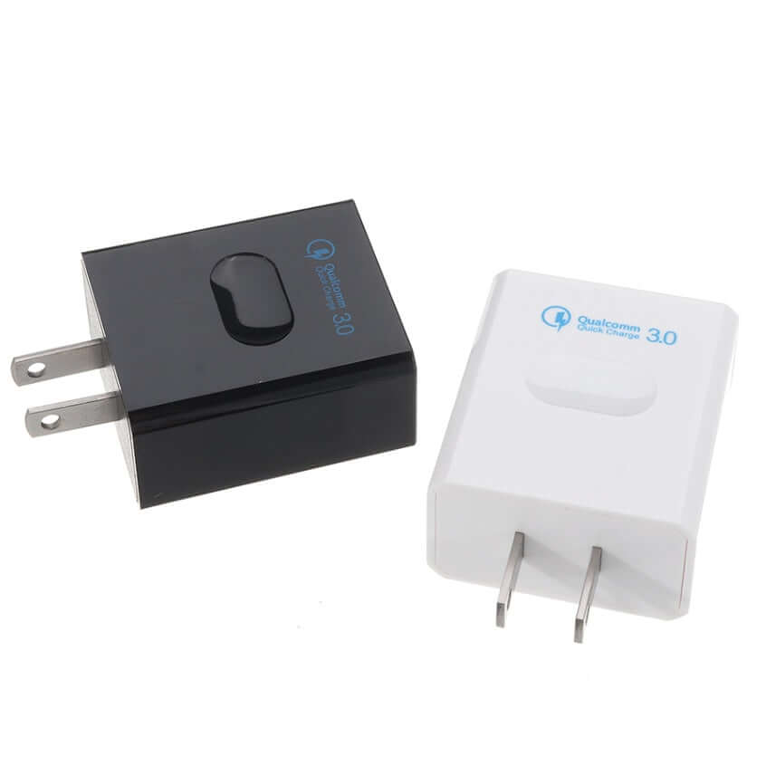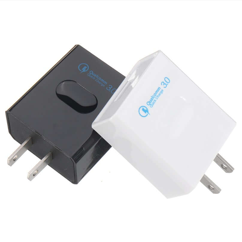Specifications: Battery type: lithium battery Charging current: 3000-1500 (MA) Input Plug: Q C3.0 Input Parameters: 100-220V Output parameter: 5/9/12(V) Input Port: USB Circuit Scheme: IC Ripple Noise: less than 200MV P-P Material: PC+ABS Color:White,Black Size: 50*43*24 (excluding pins) Package Included: