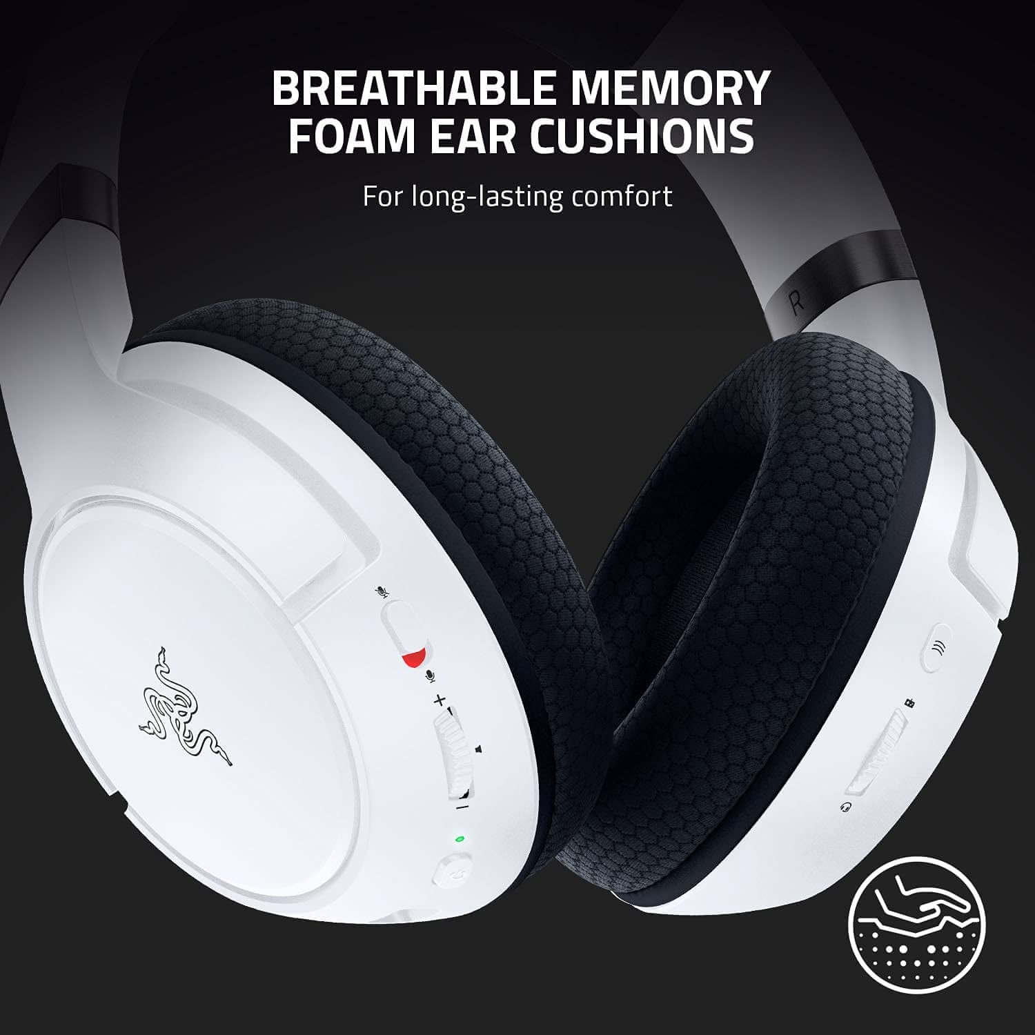 Comfort remains a priority, and the memory-foam ear cushions deliver a soft, breathable fit. Whether gaming for 30 minutes or several hours, the lightweight frame ensures minimal pressure while maintaining full stability. Razor Vision notes that the wireless design removes cable clutter while maintaining low-latency performance, giving players freedom of movement and uninterrupted gameplay. The elegant white finish also makes the headset visually appealing, blending with modern Xbox setups and gaming environments.